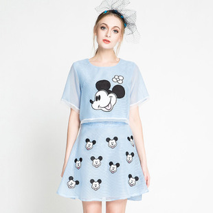 ANLANNA2015明星楊穎同款米奇印花花瓣短袖上衣半身裙女兩件套裝 /