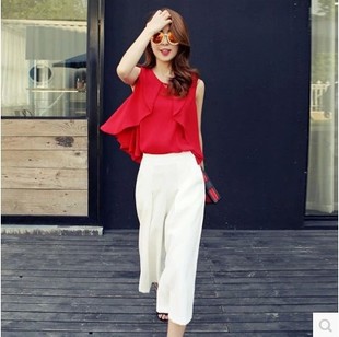 簡介: 貨號 L88848114CR63208 產(chǎn)地 廣州 主圖來源 官方圖片 貨源類別 現(xiàn)貨 是否庫存 是 庫存類型 整單 風(fēng)格 歐美 休閑 圖案 純色 面料 雪紡/喬其紗 款式 褲套裝 上衣款式 雪紡衫 上衣袖長 無袖 褲款式 闊腿褲 流行元素 印花 工藝 印花/印染 上市年份/季節(jié) 2015夏季 顏色 紅色 尺碼 M,L,XL