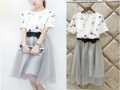 東大門代購新款韓版女裝蝴蝶結(jié)蓬蓬裙印花上衣顯瘦修身套裝連衣裙 /