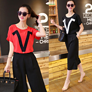 東大門 2015韓版大碼女裝 寬松T恤七分褲兩件套裝休閑套裝 女 /