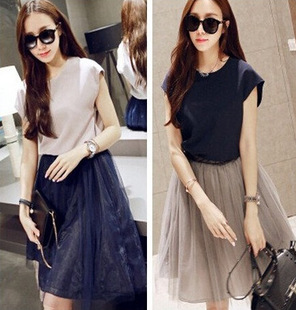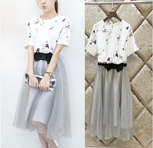 東大門 2015夏季新款韓版修身假兩件雪紡拼接網(wǎng)紗連衣裙優(yōu)雅潮 /