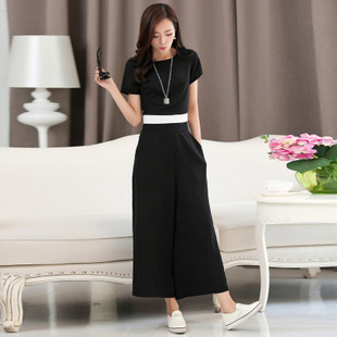 2015夏季新款時(shí)尚圓領(lǐng)短袖收腰歐美風(fēng)寬松雪紡修身兩件套批發(fā) /