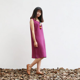 森女系文藝范全棉長款百搭打底衫吊帶棉麻小背心寬松純色亞麻T恤 /