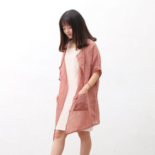 棉麻女裝春季新款自然的味道素樸文藝范簡約寬松薄棉麻防曬開衫 /