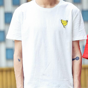 原宿風(fēng)韓范簡(jiǎn)約香蕉圖案刺繡學(xué)生短袖t恤女夏季寬松半袖體恤女潮 /