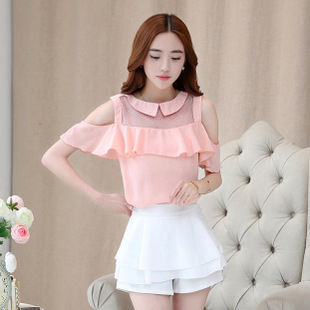 2015女夏套裝女裝小香風(fēng)名媛氣質(zhì)韓系兩件套露肩雪紡衫褲裙 /