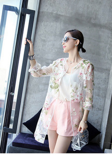 夏季防曬衣 長(zhǎng)袖防紫外線開(kāi)衫中長(zhǎng)款透明薄款外套 /