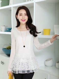 2015 春裝新款t恤女長(zhǎng)袖韓版中長(zhǎng)款甜美修身蕾絲衫 /