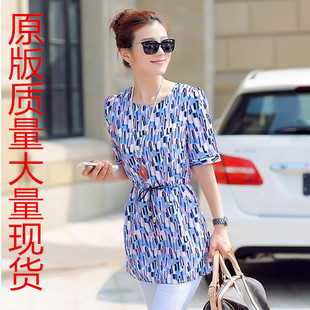 2015夏裝新款大碼女裝中長款t恤雪紡上衣打底衫寬松 /