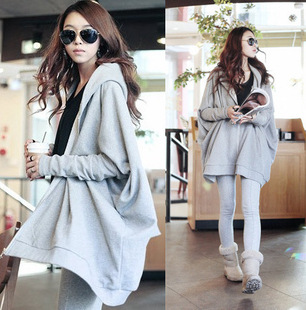 大碼女裝胖MM秋裝外套200斤外貿(mào)女士衛(wèi)衣蝙蝠式寬松開衫連帽上衣 /