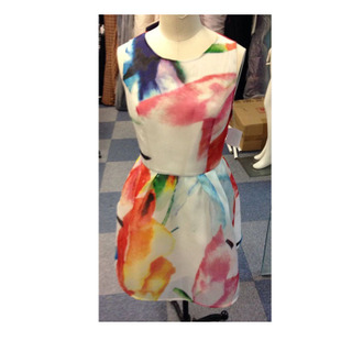 2015夏季女裝歐版修身花色歐根紗印花無袖淑女蓬蓬裙 /