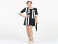 2015夏裝新款短袖黑白連衣裙歐美大牌桑蠶絲真絲綢緞裙大碼 /