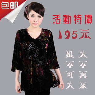 正品2014新款中老年春夏女裝寬松顯瘦真絲絨上衣T恤加大碼媽媽裝 /