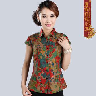 包郵正品唐依容中老年真絲香云紗上衣襯衫100%桑蠶絲莨稠短袖上衣 /