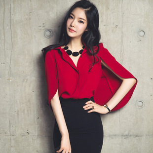 韓版 2015夏季新款女裝V領(lǐng)披肩襯衫上衣+短裙套裝 熱銷 一件代發(fā) /