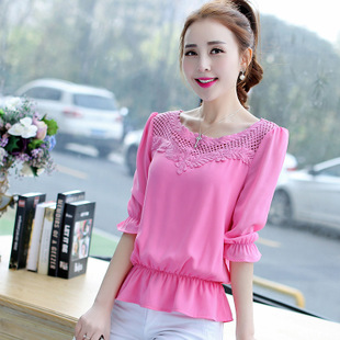 簡介: 產(chǎn)品類別 雪紡衫 貨源類別 現(xiàn)貨 風(fēng)格 韓版 圖案 純色 主圖來源 其他來源 款式 套頭 工藝 勾花鏤空 面料名稱 蕾絲 面料主材質(zhì)分類 棉纖維 面料主材質(zhì) 棉花 面料主材質(zhì)含量 10%及以下 面料次要材質(zhì)分類 棉纖維 面料次要材質(zhì) 棉花 面料次要材質(zhì)含量 10%及以下 貨號 554 產(chǎn)地 廣州 是否庫存 是 庫存類型 整單 版型 修身型 衣長 普通款(50cm<衣長≤65cm) 領(lǐng)型 圓領(lǐng) 袖型 公主袖 袖長 七分 流行元素 拼接,紗網(wǎng),荷葉邊,鏤空 上市年份/季節(jié) 2015夏季 面料 雪紡 成分 棉 成分含量 31%-50% 顏色 白色,玫紅色 尺碼 S,M,L,XL