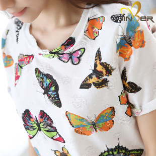 T恤2015夏裝新款韓版大碼女裝手工磨破短袖打底衫韓國顯瘦上衣潮 /