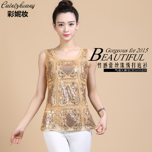 批發(fā)2015夏季女裝韓版蕾絲吊帶時(shí)尚背心打底衫一件代發(fā) /