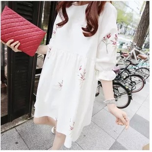 2015夏新款刺繡娃娃衫上衣 寬松大碼棉麻夏裝連衣裙 女 /