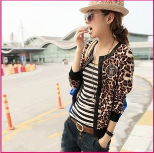 夏裝新款螺紋袖口 豹紋小外套夾克式 豹紋拼皮短外套 /