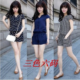 2014夏裝新款韓版女連體褲時(shí)尚顯瘦條紋連衣褲短褲女褲 實(shí)體批發(fā) /