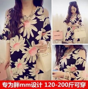 特加大碼女裝胖mm夏裝韓版寬松連衣裙 200斤胖妹妹大花上衣雪紡衫 /