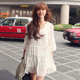 棉麻外貿(mào)女裝春款森林系森女甜美蕾絲繡花拼接鏤空大碼日單連衣裙 /