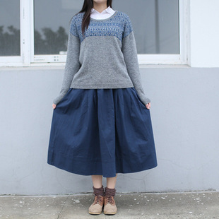 特批日單森林系原創(chuàng)文藝范小清新松緊腰春夏季款棉麻半身長裙女裙 /