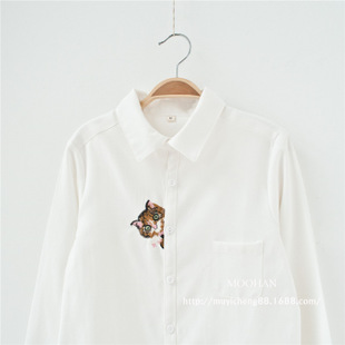 高品質(zhì)秋冬新款加厚牛津紡卡通刺繡襯衣森女秋冬白襯衫女初語同款 /
