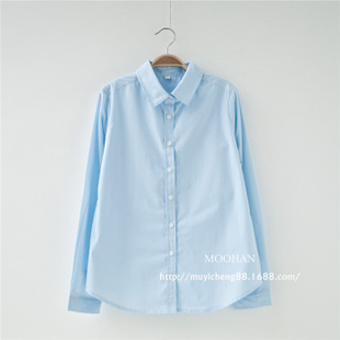 2015新春簡約天絲棉純色休閑修身百搭內(nèi)搭女式長袖襯衫藍白色純棉 /