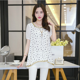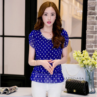 2015波點短袖t恤女 夏季韓版新款 雪紡修身圓領(lǐng)短袖上衣女 打底衫 /