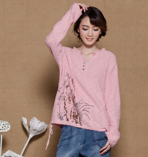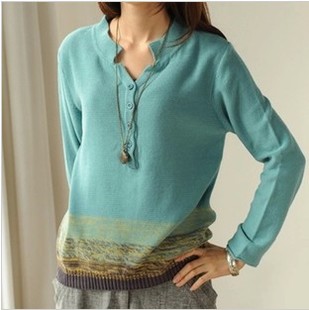 2015春裝新款麥素正品斯琴風格印花百搭長袖針織衫批發(fā) /