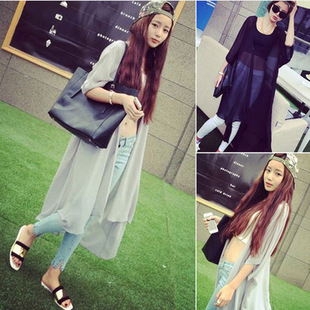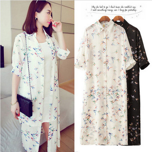 2015夏季薄款開衫外套雪紡披肩印花超長款襯衣戶外防曬衣 /