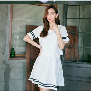 韓版夏裝新款女裝短袖圓領(lǐng)T恤上衣學(xué)院風(fēng)短裙兩件套連衣裙 /
