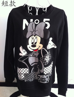 外貿清倉韓版秋冬新款女裝圓領加絨長袖卡通米老鼠抓絨短款衛(wèi)衣 /