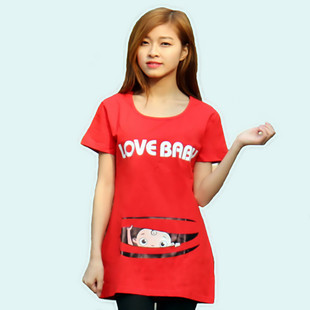 出口歐美新款時尚大碼孕婦裝夏裝純棉t恤衫韓版寬松卡通短袖上衣 /