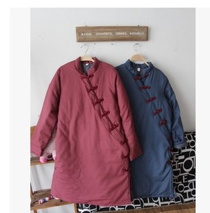 2014秋冬新款 復古棉麻文藝范中式盤扣寬松中長棉衣 中國風棉衣襖 /