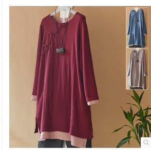 2014秋裝新款 復古文藝范中式盤扣雙層加厚棉紗連衣裙 中國風袍 /