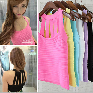 2015韓版夜店性感修身針織衫吊帶背心露背上衣短款廠家直銷 /
