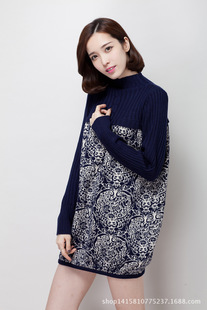 2015春季新款女裝韓版中長款針織打底衫毛衣裙 大碼女士毛衣批發(fā) /