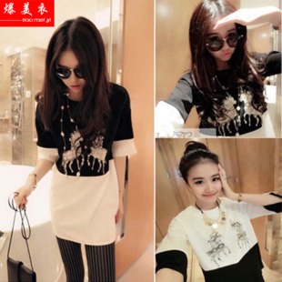 簡介: 建議零售價 ¥98.00 貨號 7128 產(chǎn)地 廣州 主圖來源 實拍有模特 品牌 爆美衣 貨源類別 現(xiàn)貨 是否庫存 是 庫存類型 整單 風格 韓版 圖案 印花 面料 棉 成分 50% 版型 寬松型 組合形式 單件套 厚薄 薄款 衣長 中長款(65cm<衣長≤80cm) 袖長 五分袖/中袖 袖型 常規(guī)袖 領(lǐng)型 圓領(lǐng) 流行元素 拼接,印花 工藝 拼貼/拼接 上市年份/季節(jié) 2015夏季 顏色 白色,黑色 尺碼 S,M,L,XL,XXL
