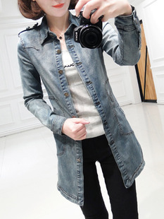 春季女裝韓版墊肩修身顯瘦長(zhǎng)款牛仔外套女牛仔襯衫長(zhǎng)袖2F110 /