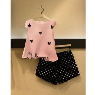 Z2817韓國(guó)東大門2015春夏新款 韓版休閑可愛米老鼠上衣+短褲套裝 /