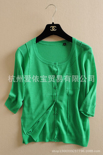 5012 歐美風(fēng) 圓領(lǐng)單排扣亞麻混紡中袖針織開衫 1505 /