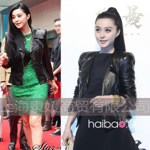2015春新款范冰冰明星同款歐美立領(lǐng)修身短款皮衣女小外套夾克瘦潮 /