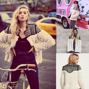 現(xiàn)貨 秋冬新款 李小璐明星同款米白皮草外套重工鉚釘潮牌上衣女裝 /
