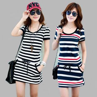 2015夏季新款韓版女純棉彈力條紋短袖連衣裙包臀胖mm一件代發(fā)批發(fā) /