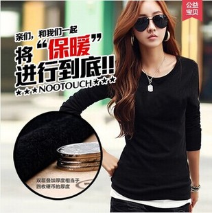 2015春裝新款不倒絨加厚純色必備款保暖打底衫圓領(lǐng)長袖女士上衣 /