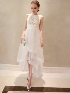 2015最新時(shí)尚重磅圖騰立體網(wǎng)格繡花燕尾裙連衣裙 /