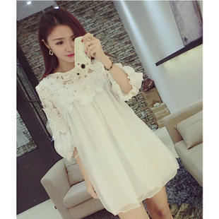 韓版新品 夏季白色歐根紗鏤空花朵圓領(lǐng)連衣裙 A210 /